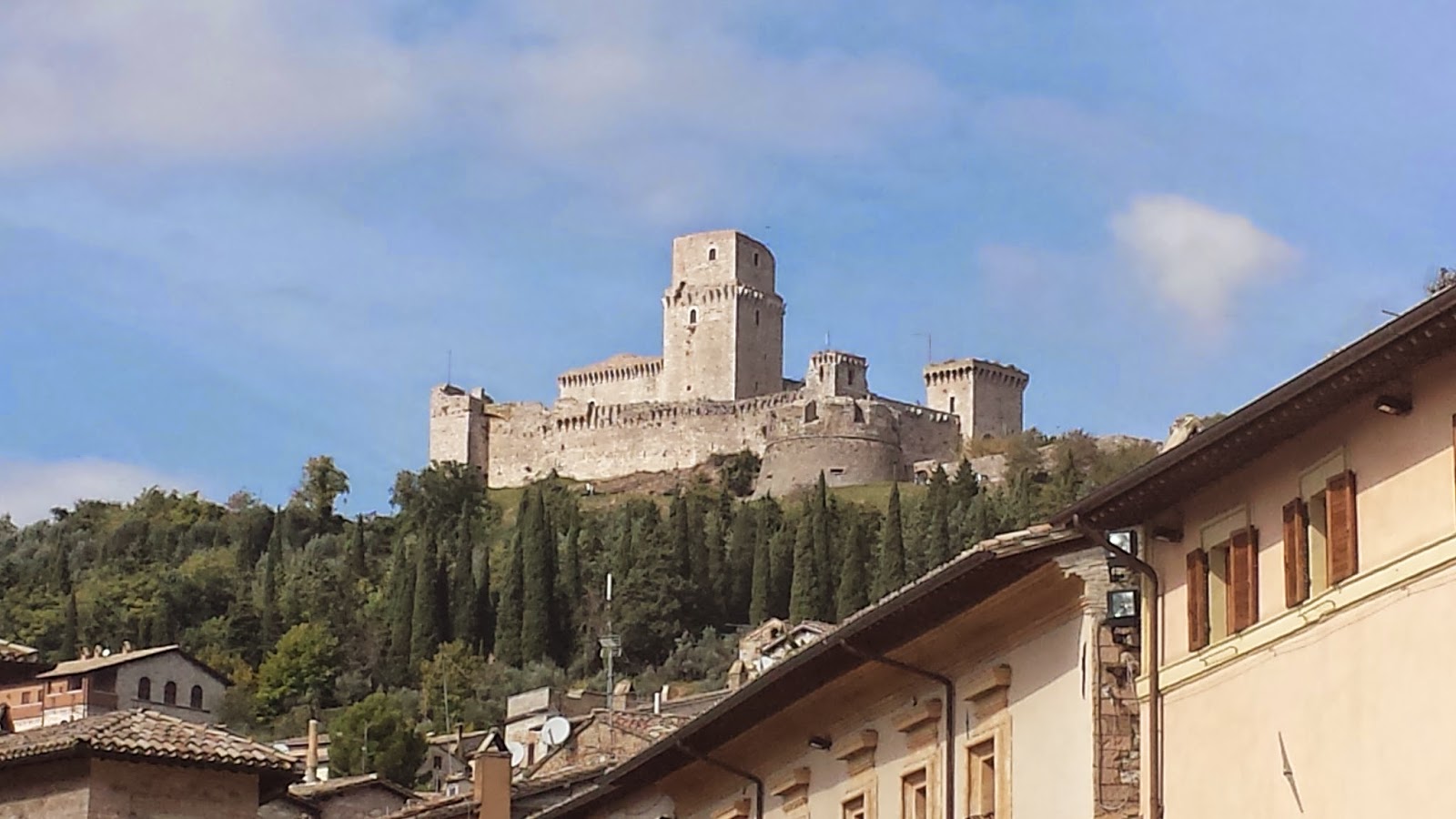 Wednesday, October 8, we arrived by train from Florence to Bastia, one train stop short of the town of Assisi, Italy. Rented vans took us "up the hill:" around the outer periphery of the charming and beautiful town of Assisi, and out the "north gate" at the top of the town. The road, SS 444, winds its way up the hills that coalesce into a mountain, around and behind Mt. Subasio upon whose western flank the town of Assisi clings.