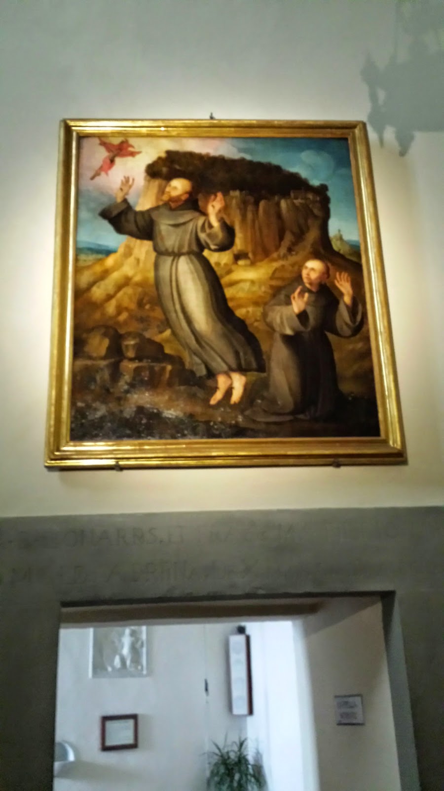By pre-arrangement, he took us outside the public areas and into the rooms of St. Joseph of Cupertino. Joseph was a simple, humble and, I believe, all but illiterate priest who lived about a century after Francis. His story is quite remarkable and his claim to fame is the fact that he often was seen, publicly and by crowds, to levitate in ecstasy while attempting to "say" Mass. But with our intellectual tour guide, our stay there was rather limited. We sang a song together and had a few moments of silence. [Many years ago, Padma and I were able to go into those rooms with Shivani Lucki and meditate there on our own for a much longer period of time. A few days later, our pilgrims traveled by van to Joseph's home town where his incorrupt body remains on display.]